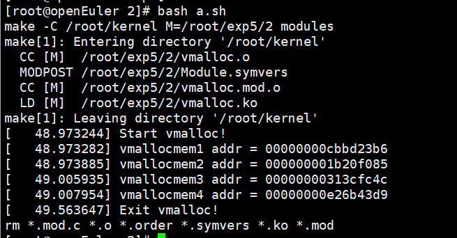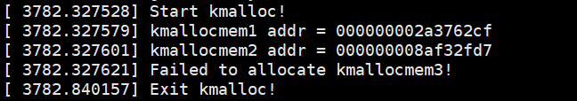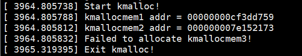 - 处理分配失败时的逻辑,在分配失败时打印“Failed to allocate vmallocmem1/ vmallocmem2/ vmallocmem3!\n”