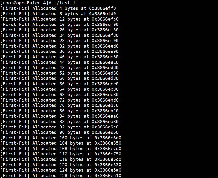 均成功分配到了所需的内存地址在 64 位系统中,这些地址通常表示为 64 位长整数。尽管这些地址显示为 8 位十六进制数,但在实际使用中,可能只用到低位部分。内核地址空间管理确保这些地址有效且可用。