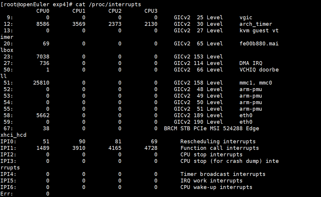 - IPI0:通常用于调度(Rescheduling interrupts)。