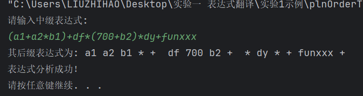 构造一个从中缀表达式到后缀形式的表达式翻译器,初步了解递归下降语法分析原理及语法制导翻译的过程。