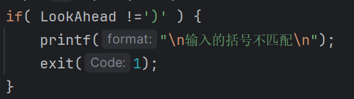 - 在GetToken()时,若读取到左括号,则认定接下来一段为括号表达式,执行Expr()函数,将括号表达式翻译成后缀形式,将其赋予lexeme(只是为了方便,与id共用变量)