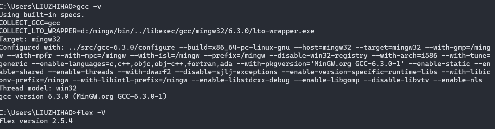 - 安装Flex和MinGW-W64,并讲其安装目录的bin子目录写入环境变量