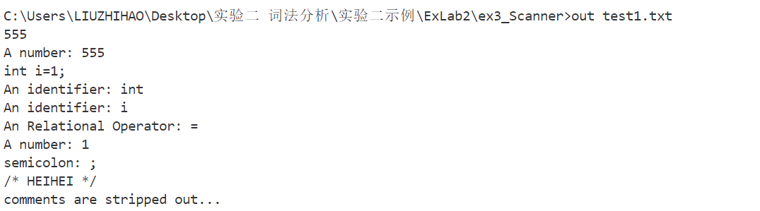 掌握词法分析器的构造原理,理解单词的类别和识别方法,掌握手工编程或 LEX 编程方法之一。