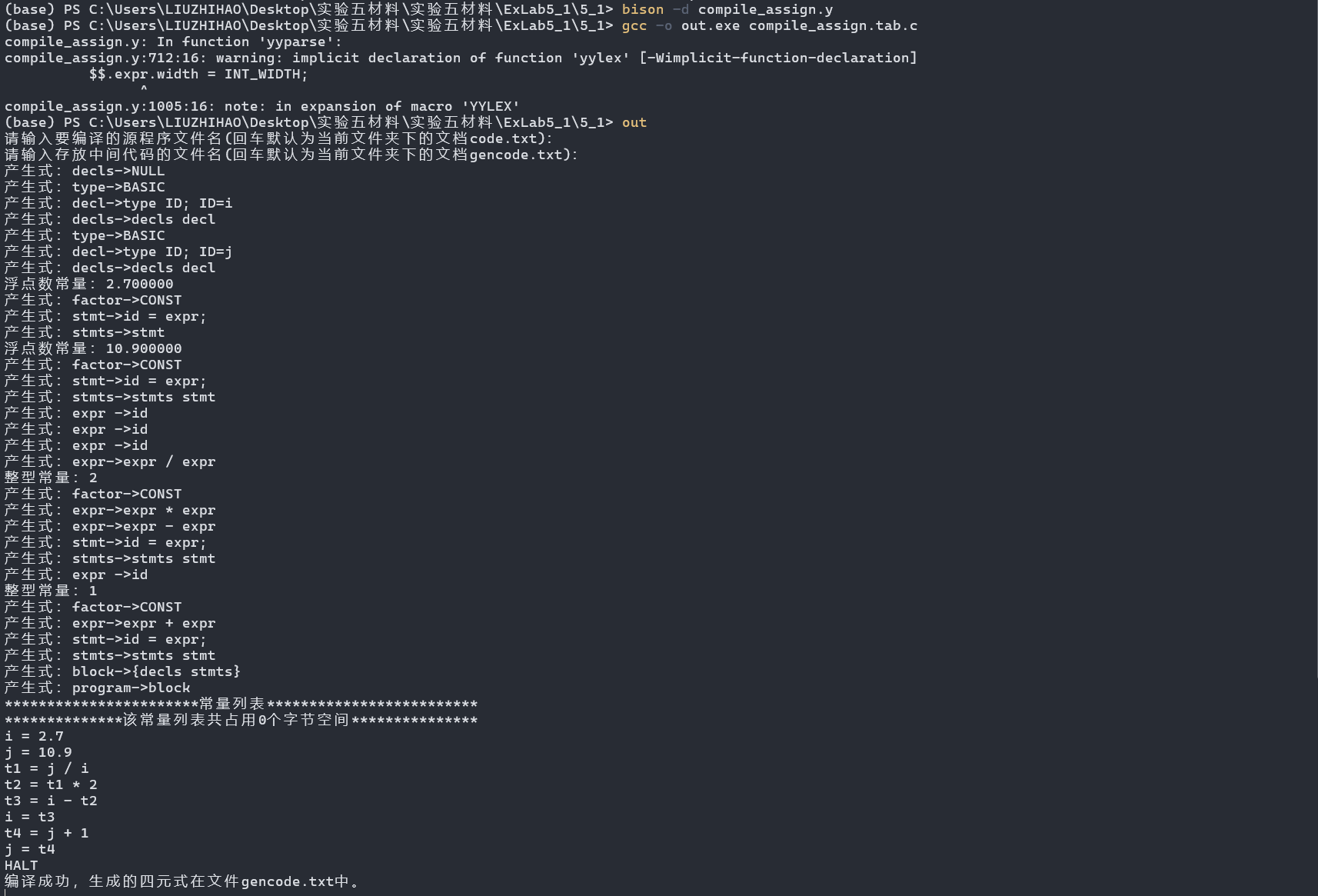 对于Exlab5_1内的compile_assign.y